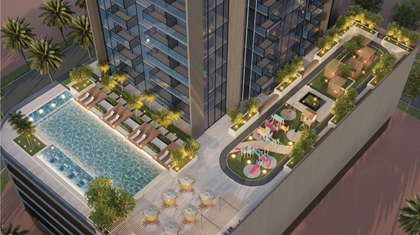 Situated in the vibrant Jumeirah Village Circle, the development offers easy access to major roads like Al Khail Road, Sheikh Mohammed Bin Zayed Road, and Sheikh Zayed Road. This family-oriented community is minutes away from Dubai’s key attractions, including Dubai Mall, Burj Khalifa, and Jumeirah Beach Residence, providing residents with a blend of convenience and lifestyle.